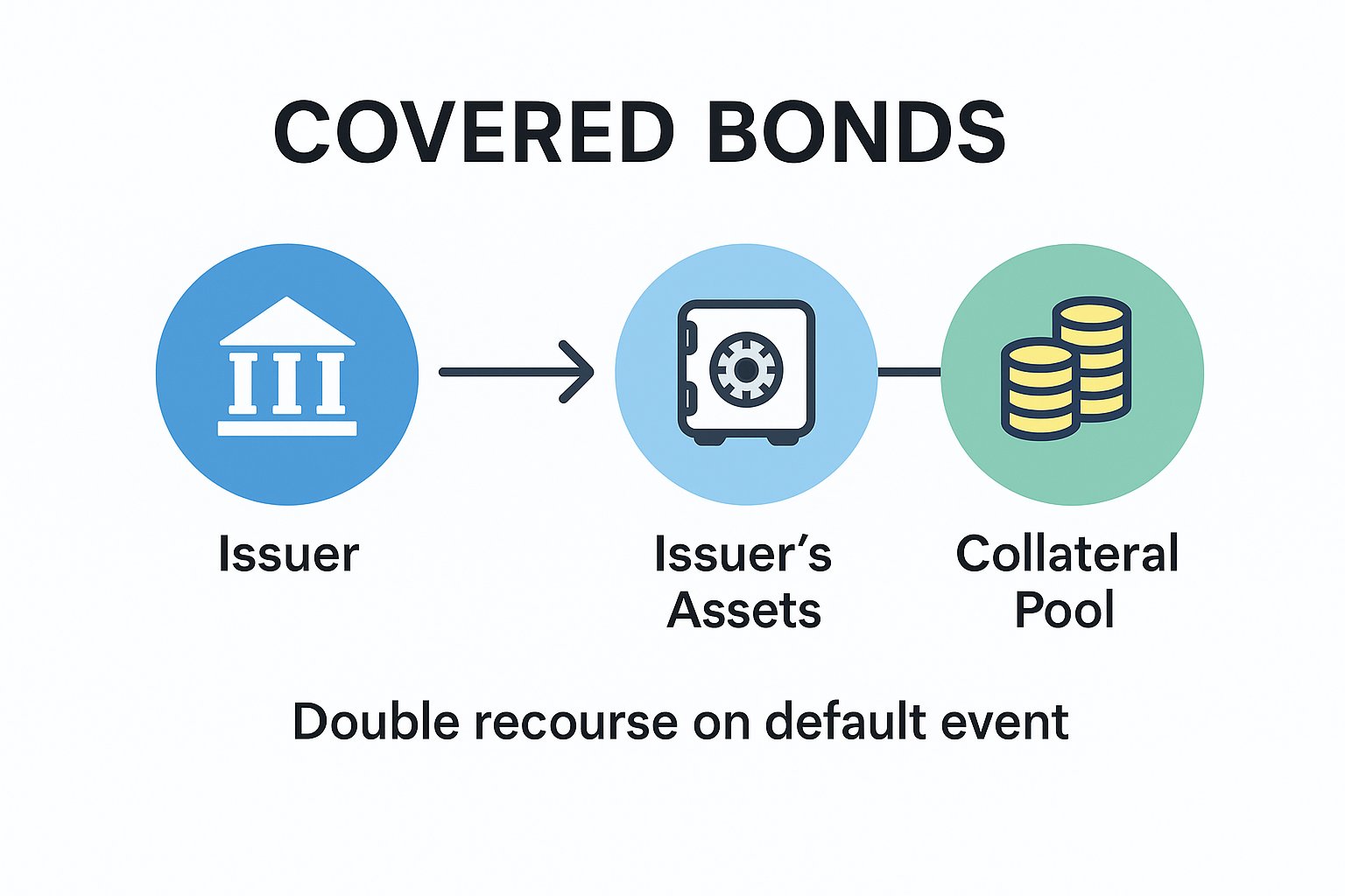 Covered bonds are issued by a financial institution (e.g. bank) & include a claim on both issuer's assets & an additional collateral in the form of a pool of assets