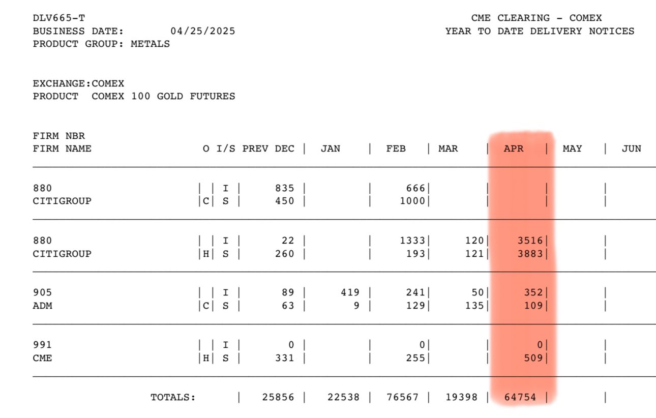 β50% of all gold physical delivery notices were filed on March 28th