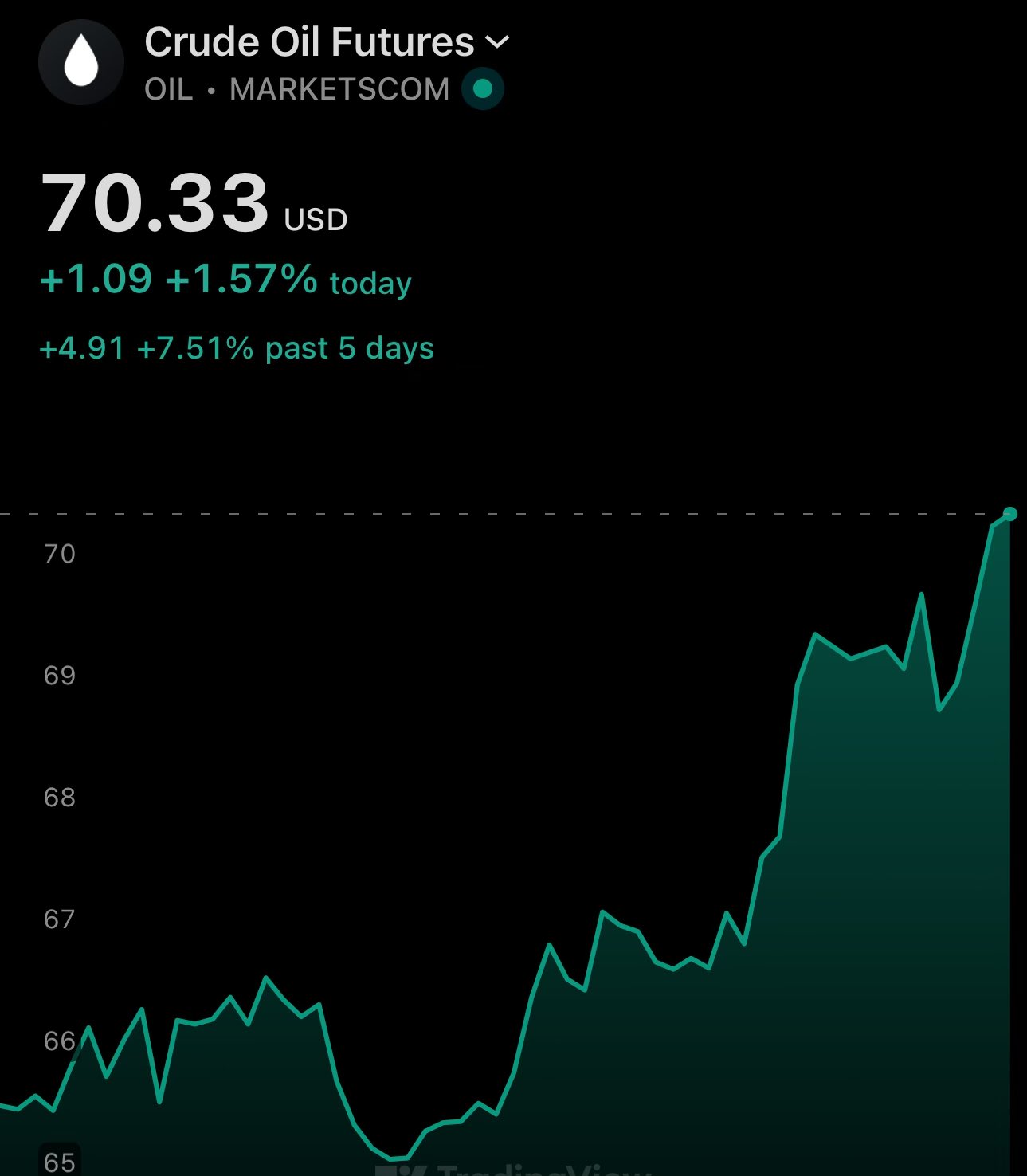 🚨🛢️aaand crude oil is trading above $70