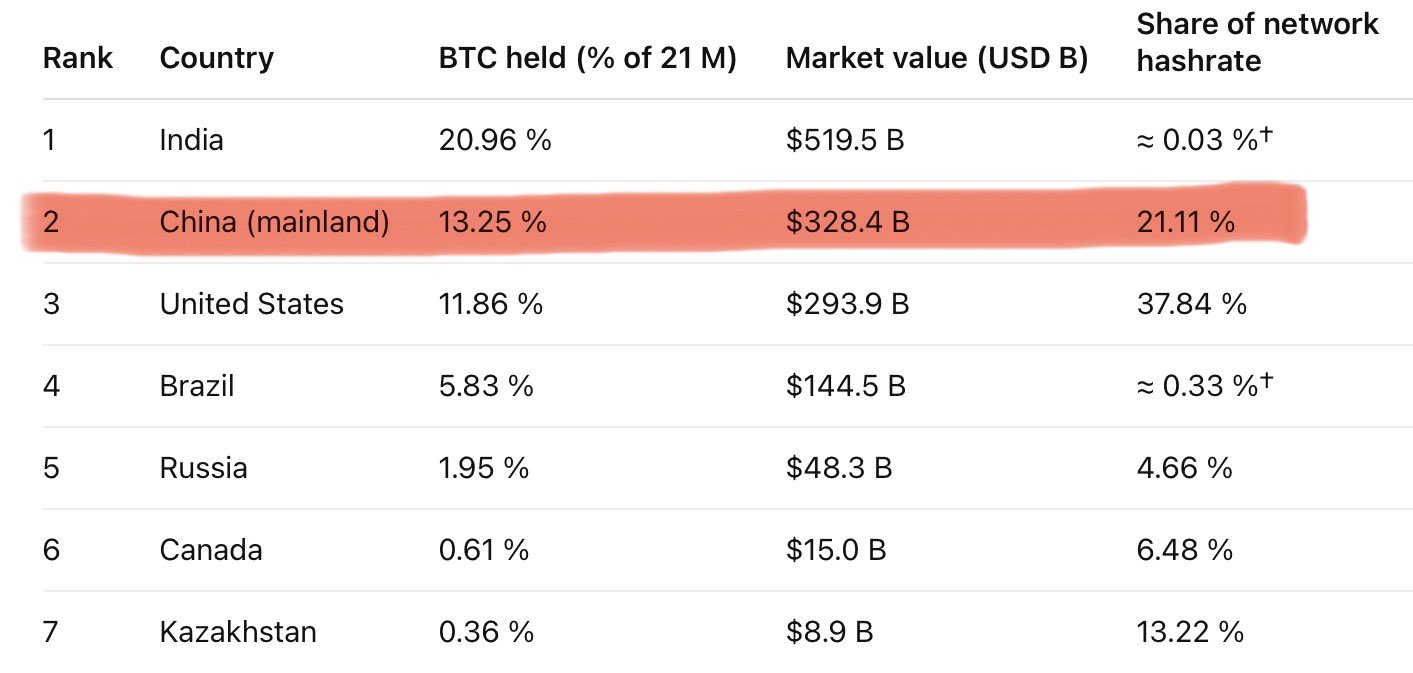 China has HUGE exposure (and control) to Bitcoin. US does the work, while China benefits. sounds familiar🤷♀️
