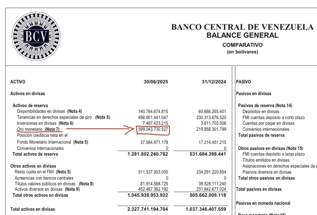 I've taken these numbers directly from Banco Nacional de Venezuela (BCV) balance sheet for 30th June 2025.