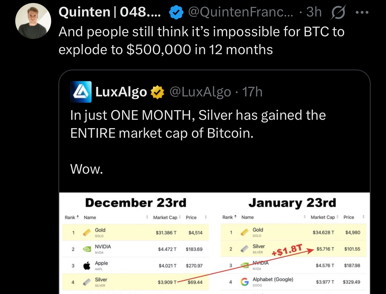 The same X accounts that were telling you to buy the Bitcoin dip on October 1st 2025, are now telling you to sell Silver on December 31st 2025