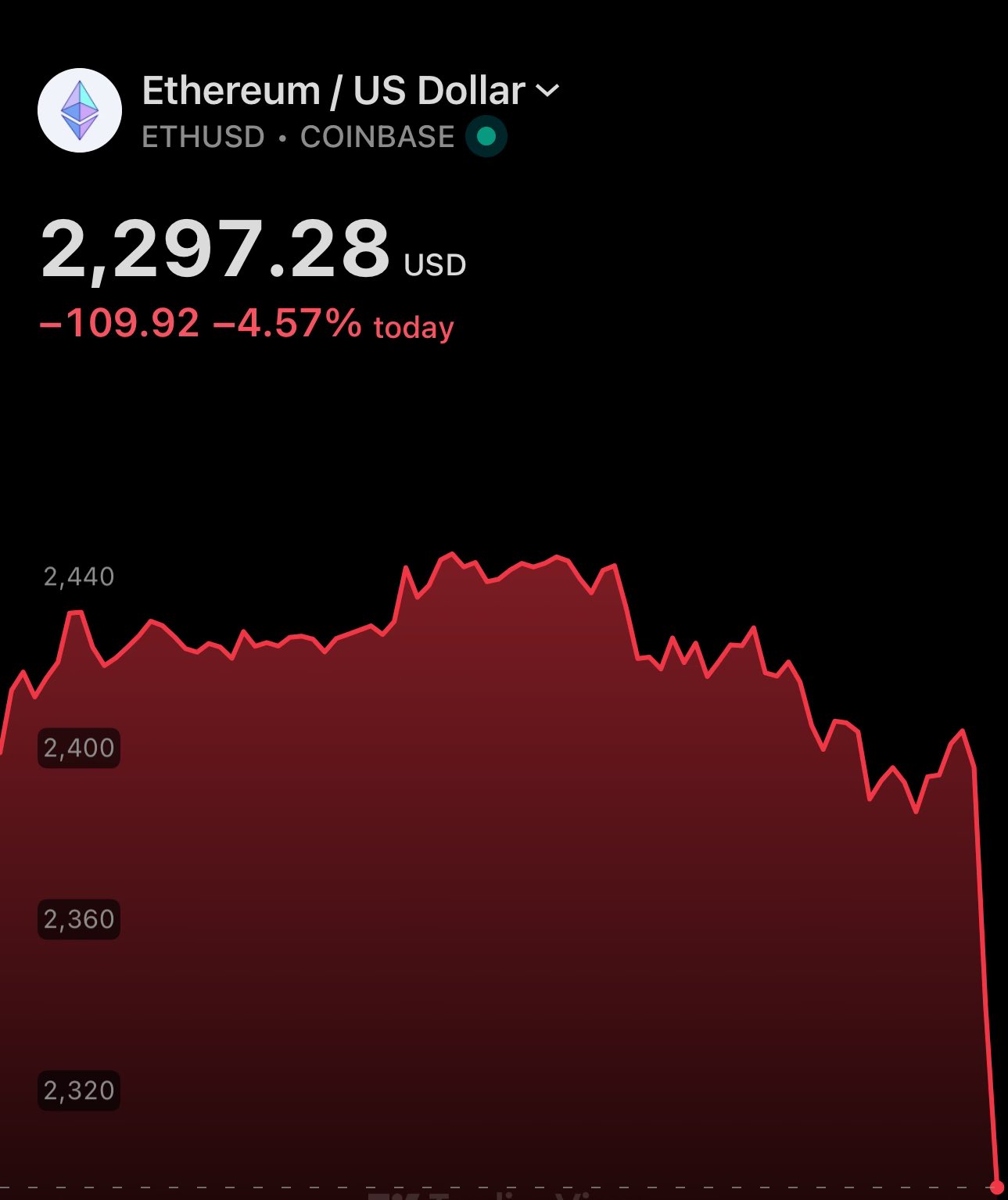 ethereum price fell to $2180 📉