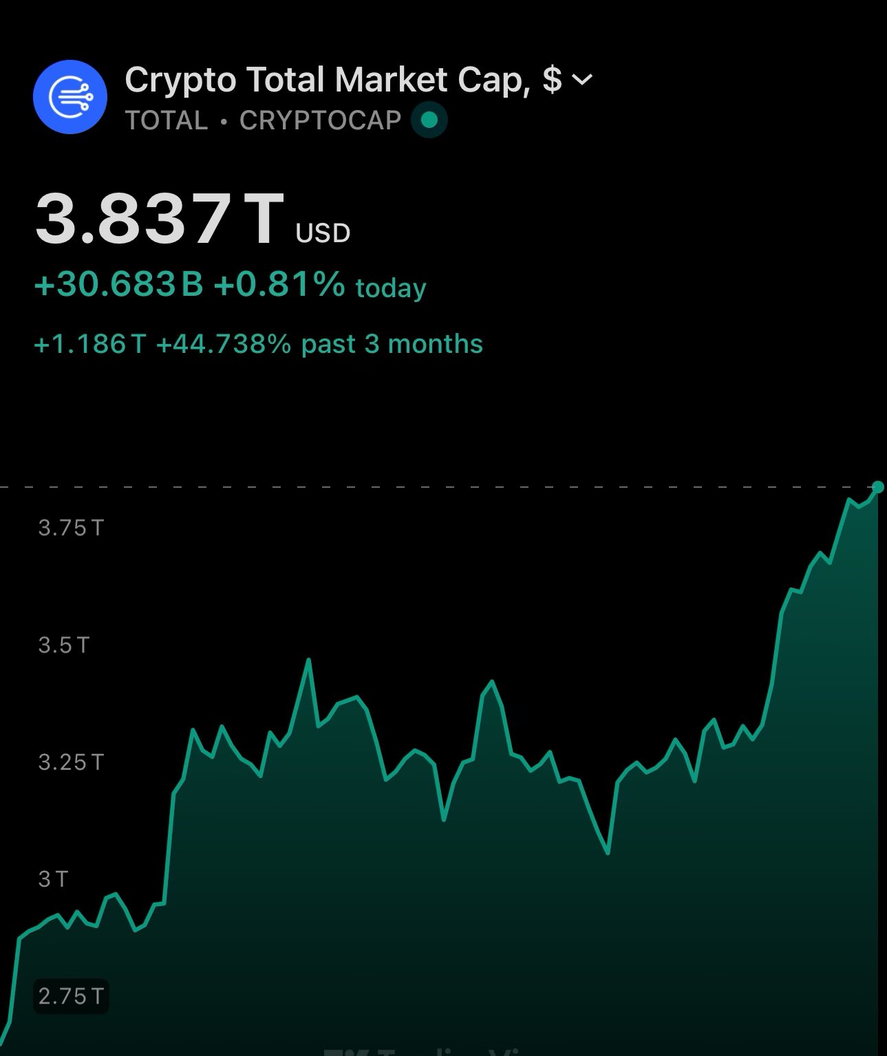 and the crypto market cap has now been sitting at $4 trillion for the 3rd day 🤝