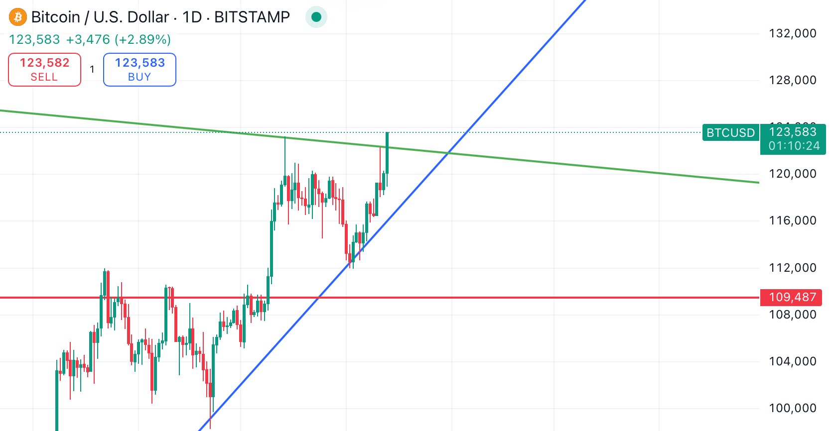 Bitcoin is still in a weekly uptrend it must either go up or down to ≈$109500 - a strong weekly support