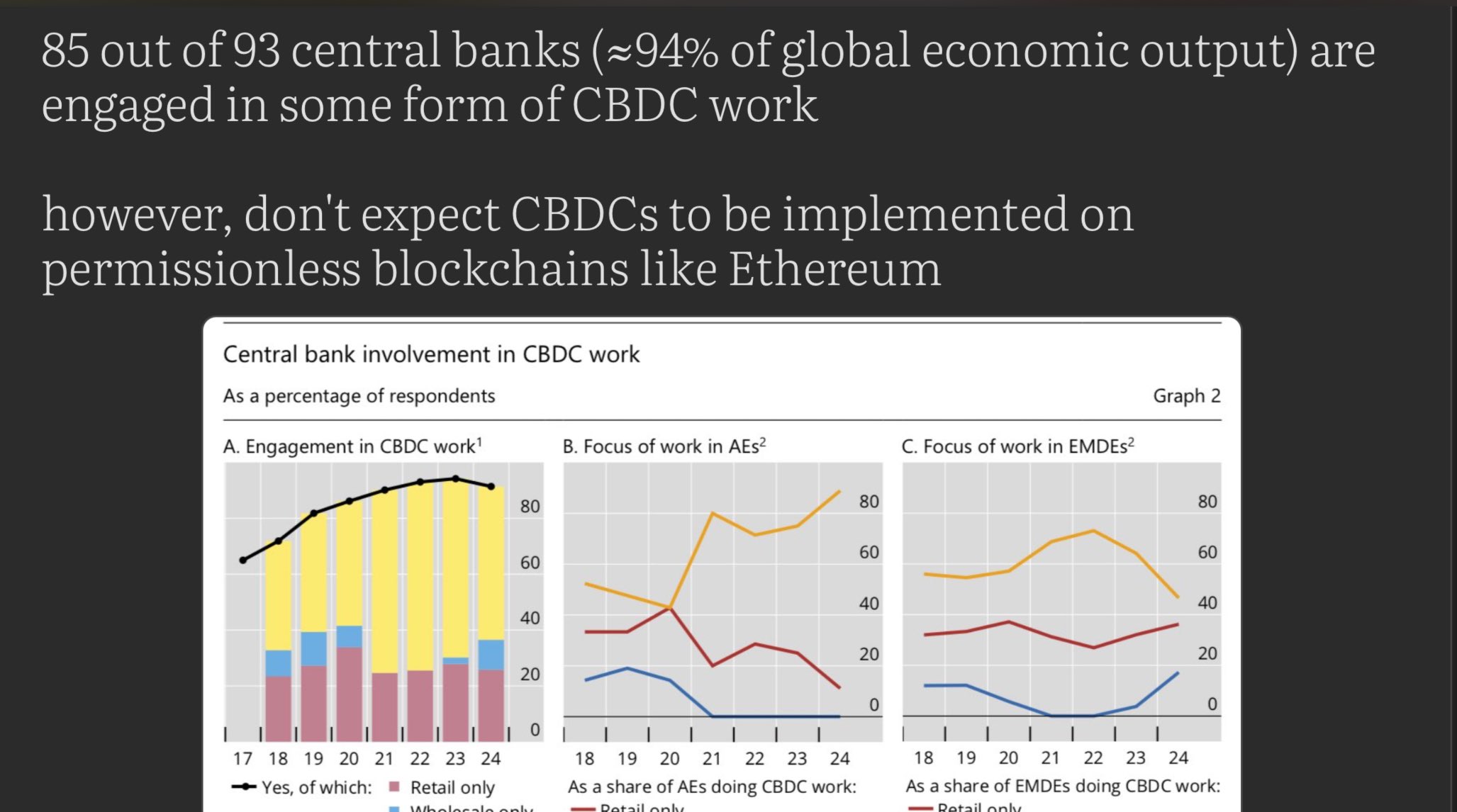 however, don't expect CBDCs to be implemented on permissionless blockchains like Ethereum