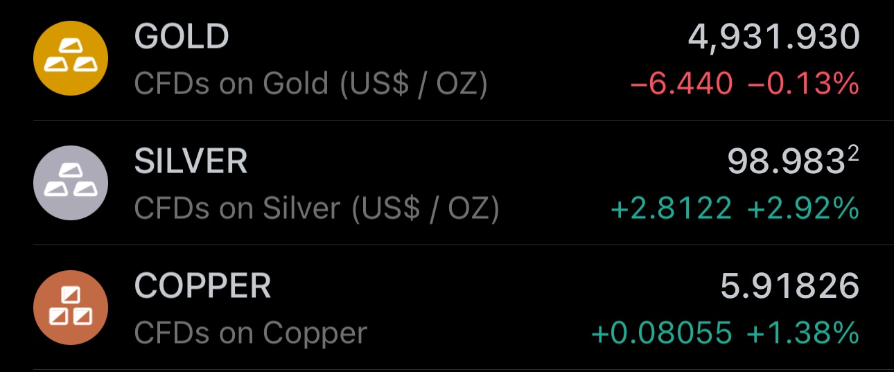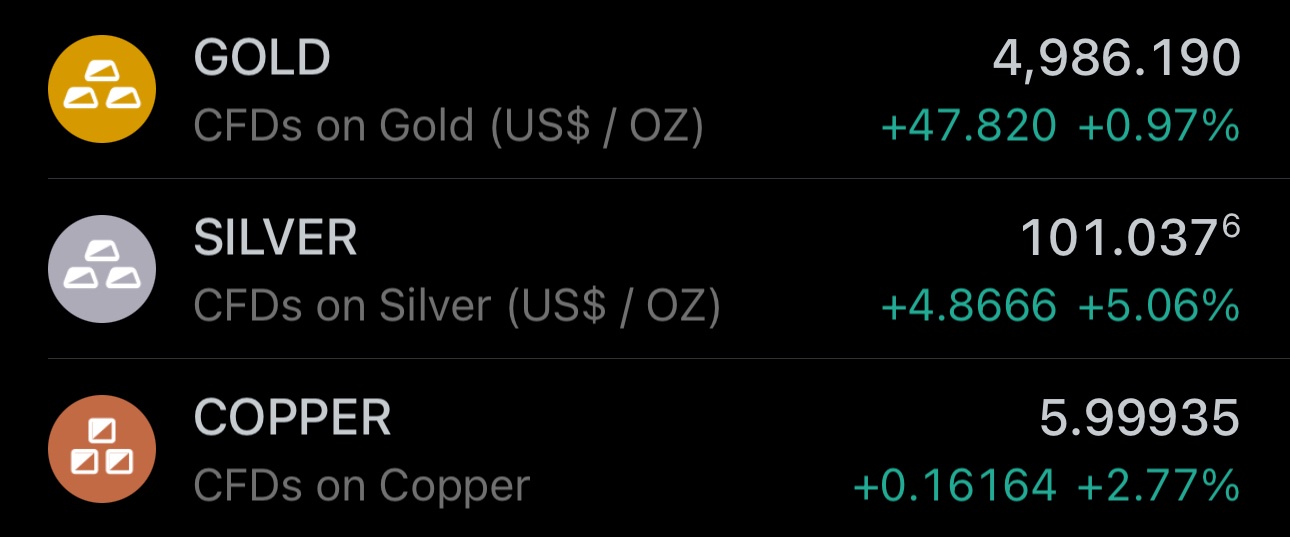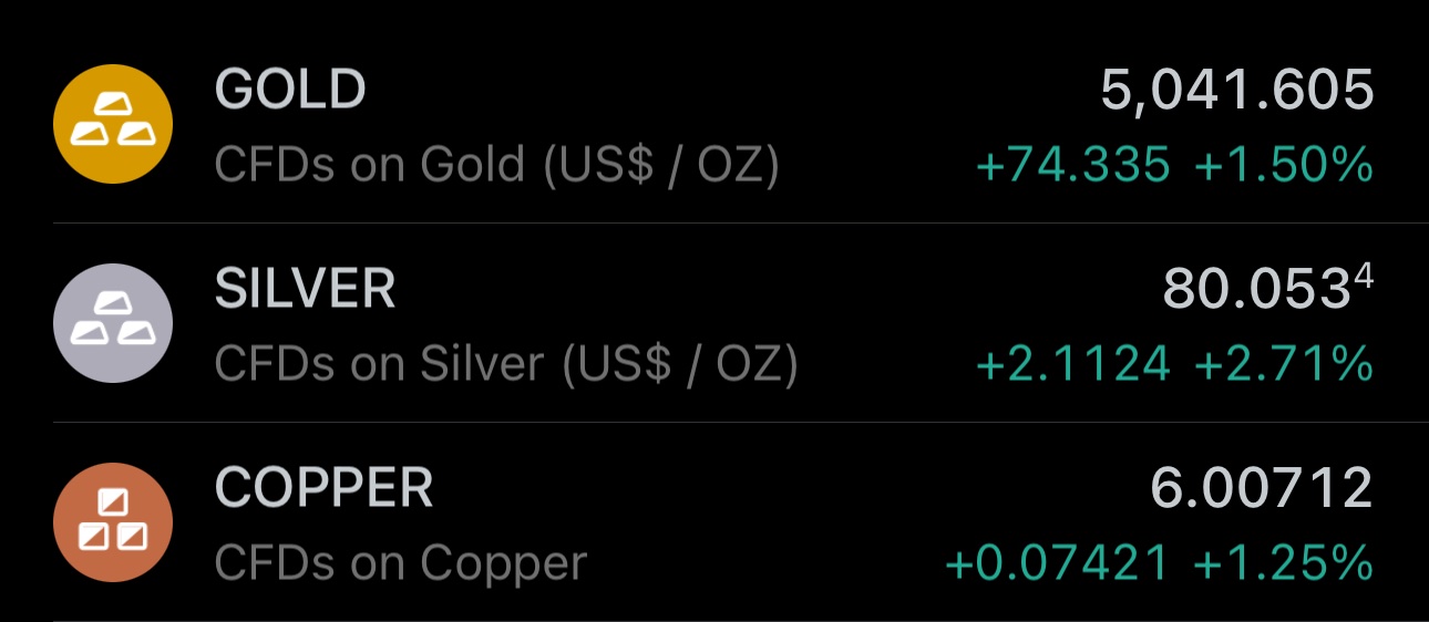 Copper extends its gains to ≈9% on the day, and its appreciating more than gold and silver