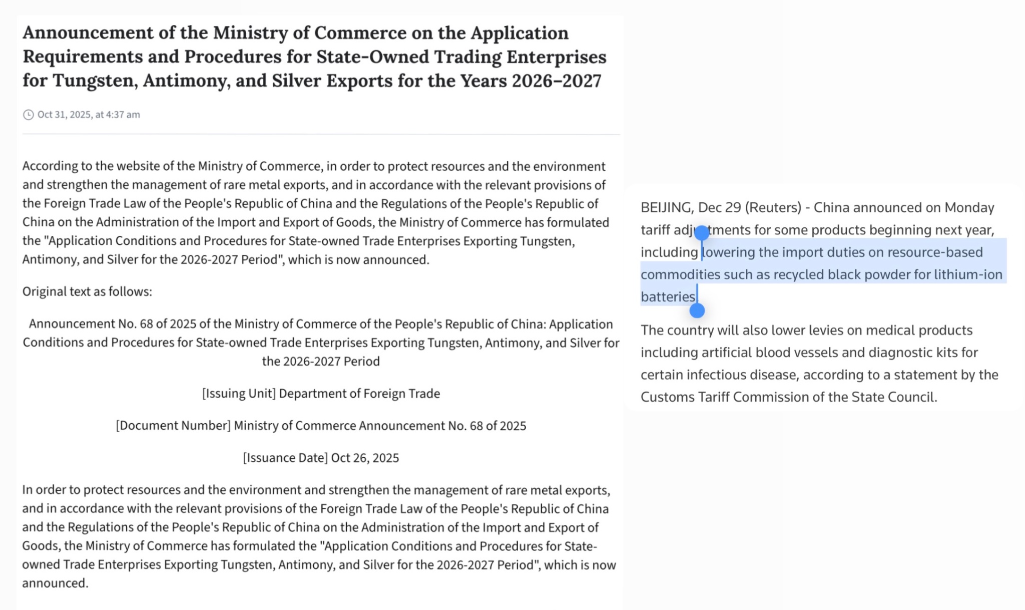 Not only PRC is limiting silver exports, but they're also lowering the cost of commodity-related imports.