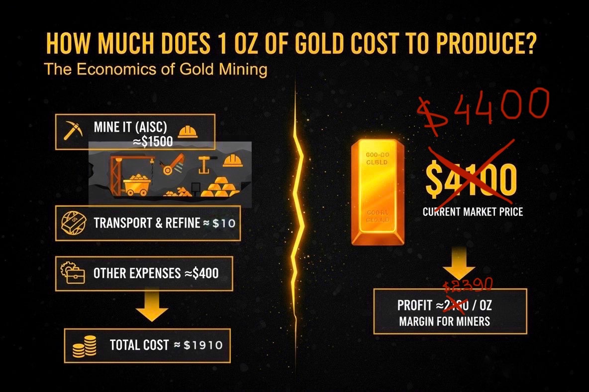 I wrote a more detailed article explains gold mining costs and miner profits here: https://illya.sh/threads/1-oz-of-gold-production-cost-and-miner-profit