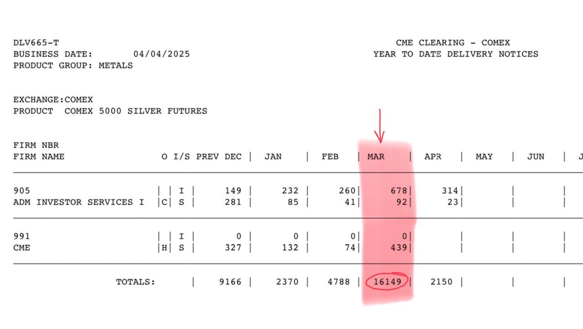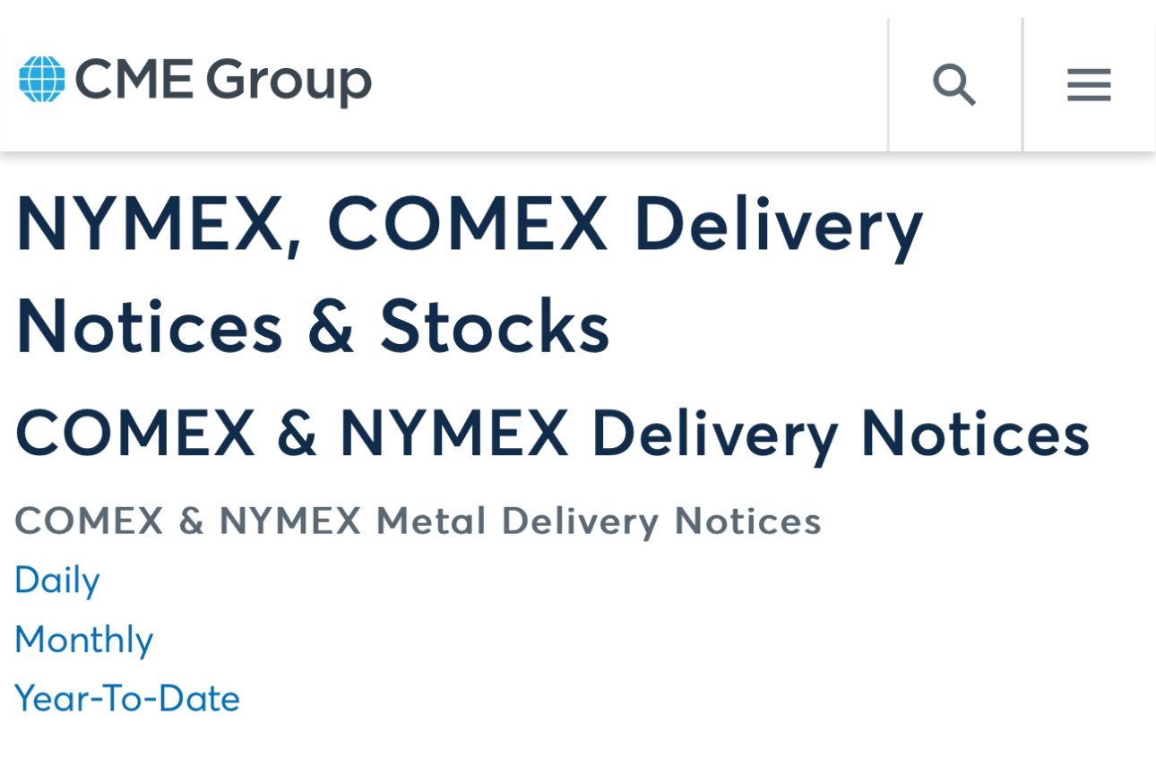 CME's COMEX & NYMEX Metal Delivery Notices show a MASSIVE demand for physical silver