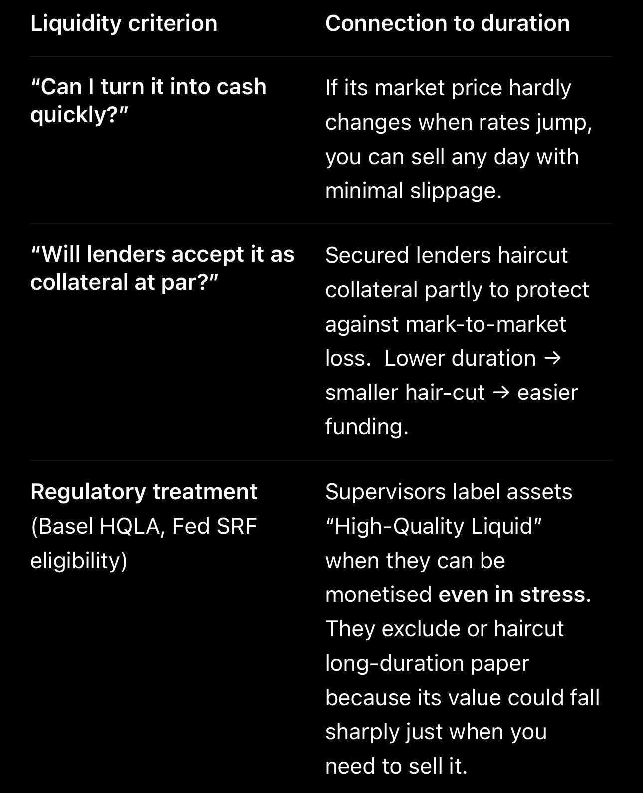 💧a liquid asset is one with low credit and duration risk