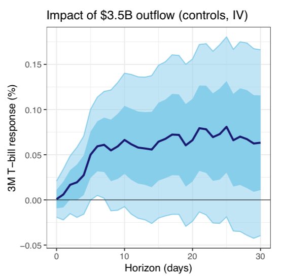 stablecoin inflows lower 3M Treasury bill yields, while outflows raise yields by a larger amount
