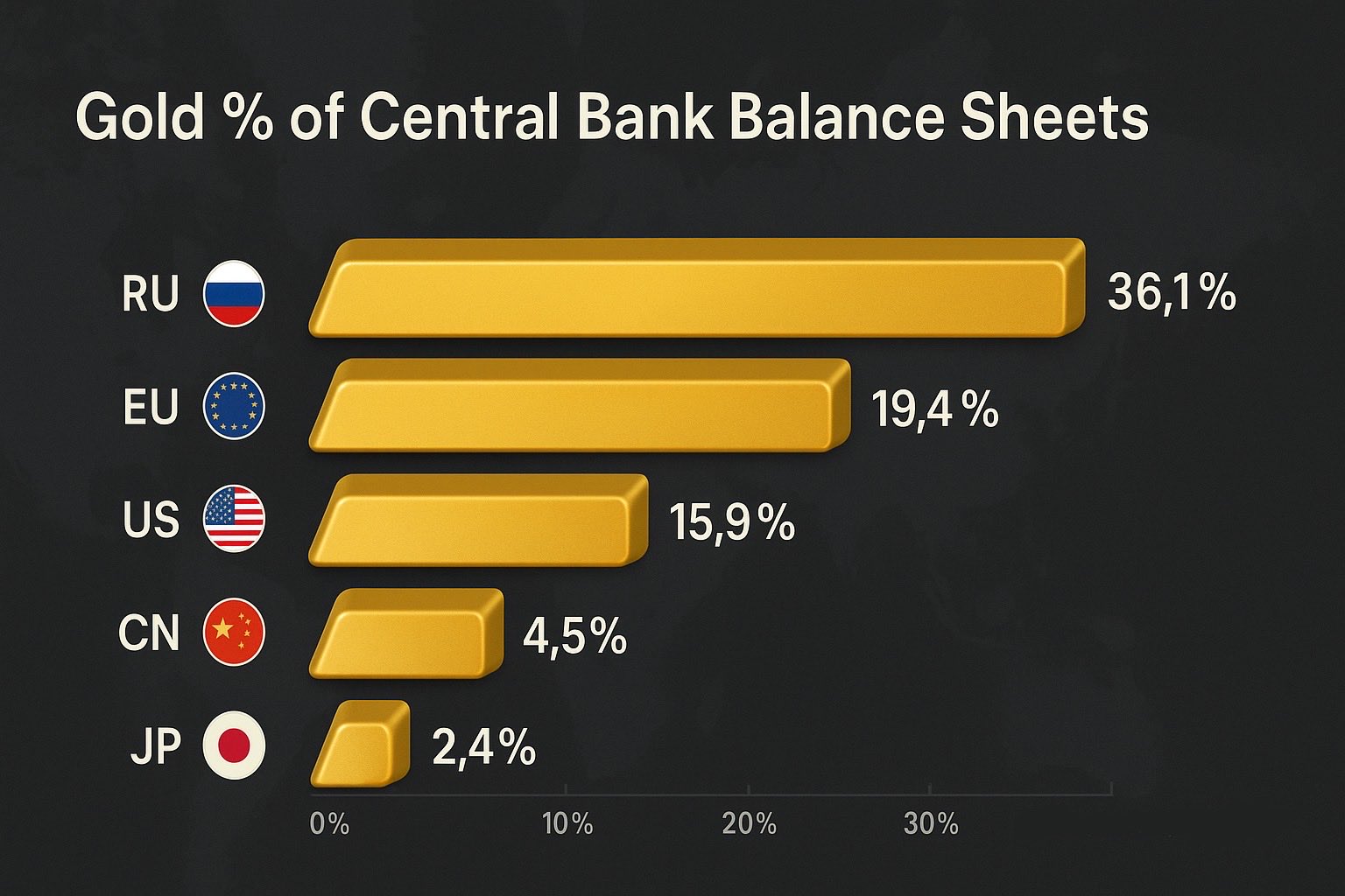 Gold as a percentage of balance sheet size in Central Banks (ranked): πŸ‡―πŸ‡΅ Japan (MoF + BoJ): β‰ˆ2.4% πŸ‡¨πŸ‡³ China (PBoC): β‰ˆ4.5% πŸ‡ΊπŸ‡Έ U.S. (Fed gold certificates): β‰ˆ15.9% πŸ‡ͺπŸ‡Ί European Union (ECB + Eurosystem): β‰ˆ19.4% πŸ‡·πŸ‡Ί Russia (BoR): β‰ˆ36.1% All of the above will expand their balance sheets, but it's mostly China & Russia actively buying more gold. Conclusions you can take from here: βž– China's gold holdings are relatively small when compared to their Central Bank's balance sheet size, and given their efforts to promote renminbi as the invoice currency worldwide, you can expect PBoC to continue their gold purchases for the medium-long term. The gold share must at least double to come close to the current reserve currency - the U.S. dollar. All reserve currencies started on a gold and/or silver standard - and the pressure towards this direction won't be different for renminbi/yen. When the USD became the world reserve currency with the Bretton-Woods agreement - gold certificates accounted for β‰ˆ40% of the Fed's balance sheet. βž– Russia has built up a massive balance sheet capacity for the future. Once the international trade markets with Russia re-open, there will be a plenty of reserves to back-up a massive wave of Ruble credit. Expect Russian capital markets to rally then. βž– European Union has a healthy relative position. Given that the Euro is currently the closest alternative to the U.S. Dollar - it's a good idea to both, expand gold reserves and promote capital markets. The latter is an explicit goal via the Capital Markets Union (CMU). Given that EU will further expand the balance sheet, it's necessary to increase the gold reserves - repricing won't be enough. Gold will make Euro more attractive, and with it the FX holdings of Euro by sovereigns.