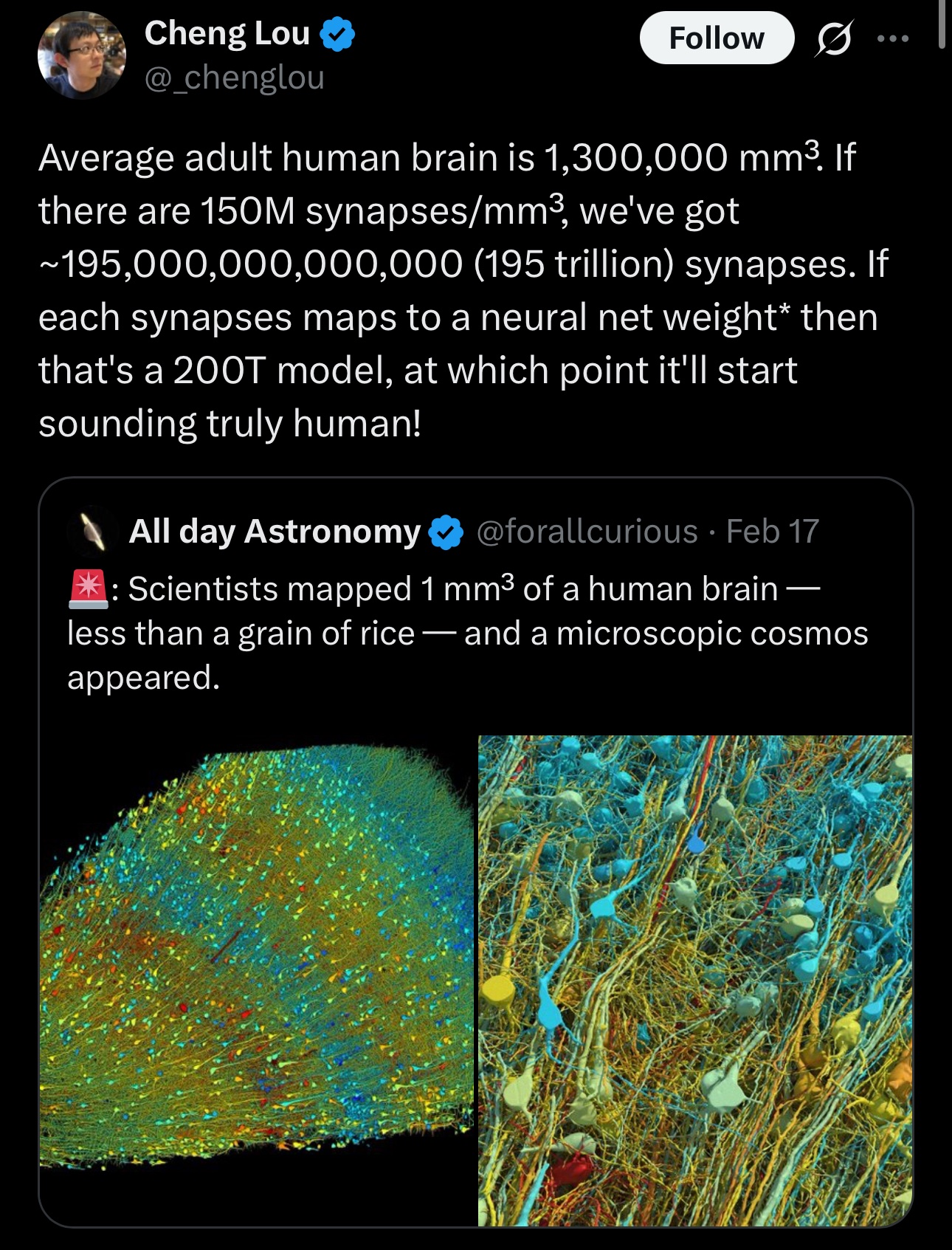 This a gross oversimplification of what it takes to replicate the human brain with AI
