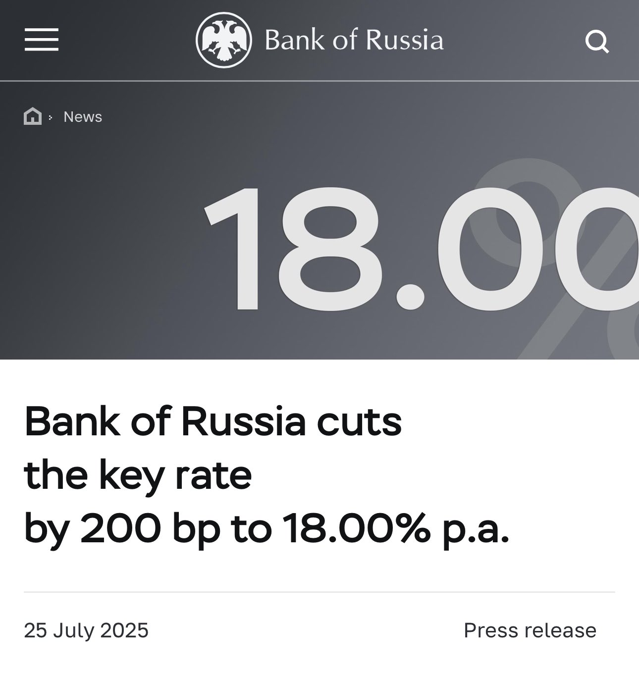 3 days ago the Russian Central Bank cut down the key interest rate by 200bp down to 18%