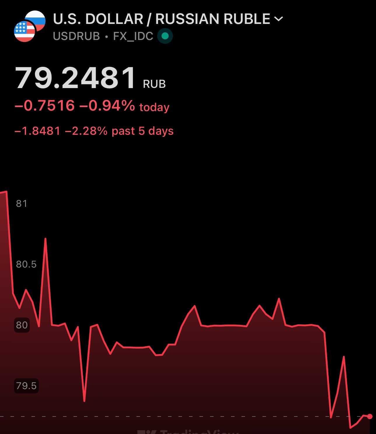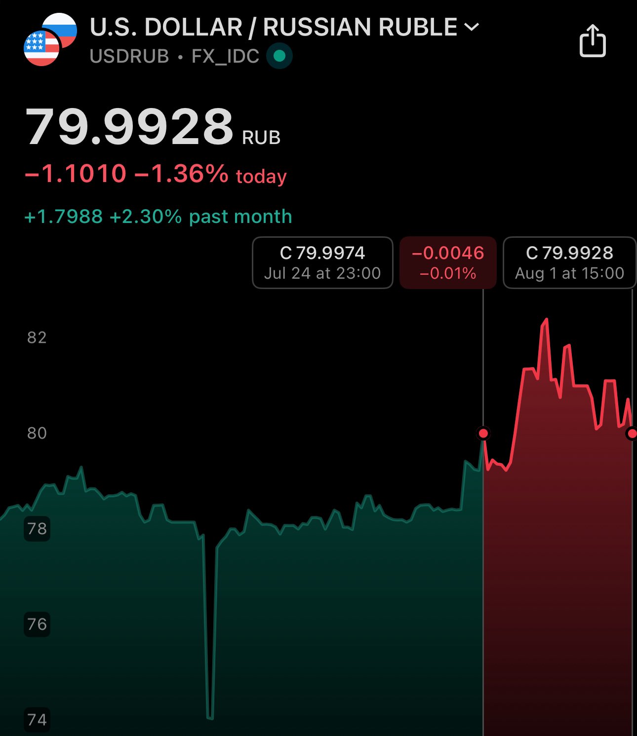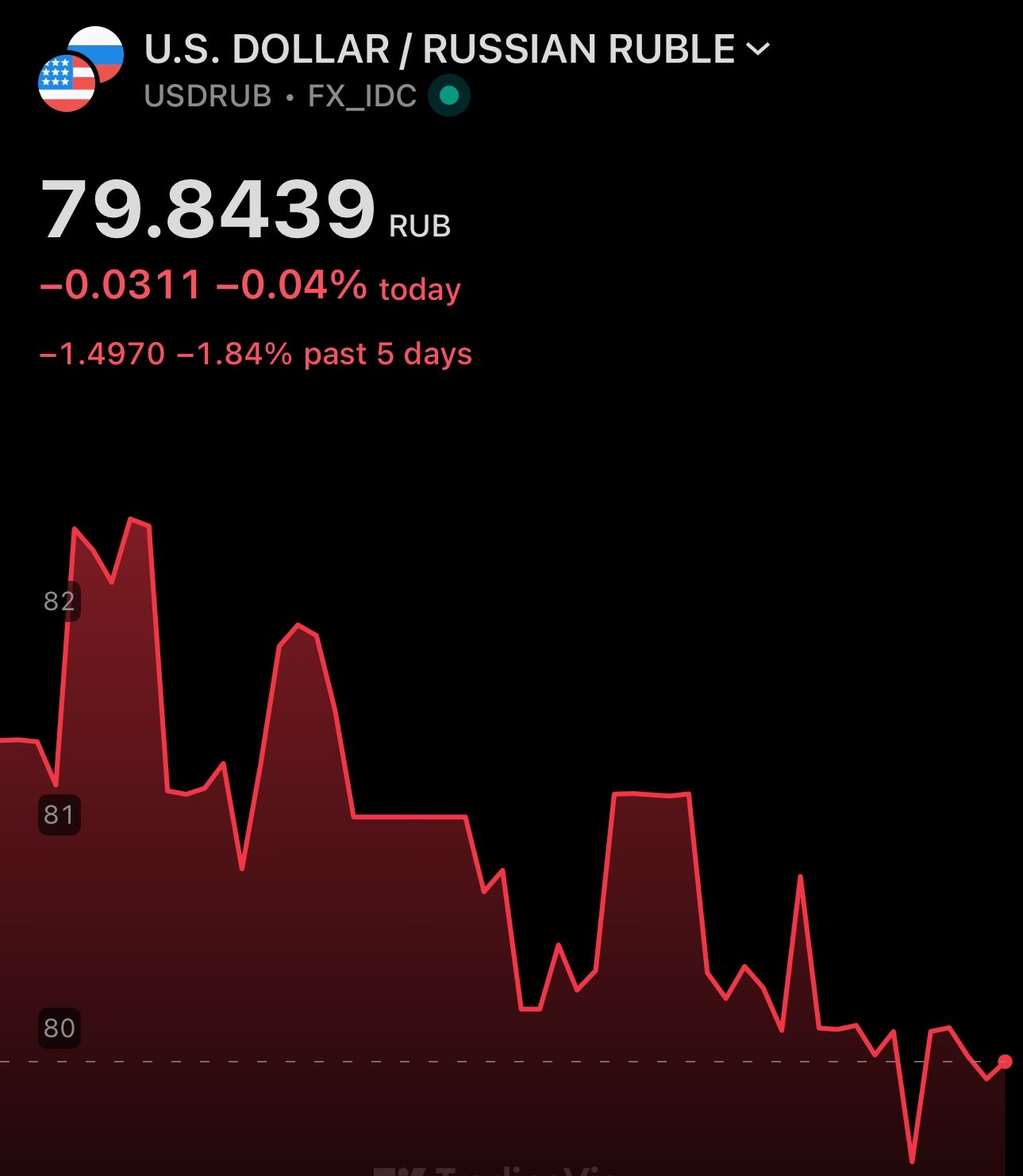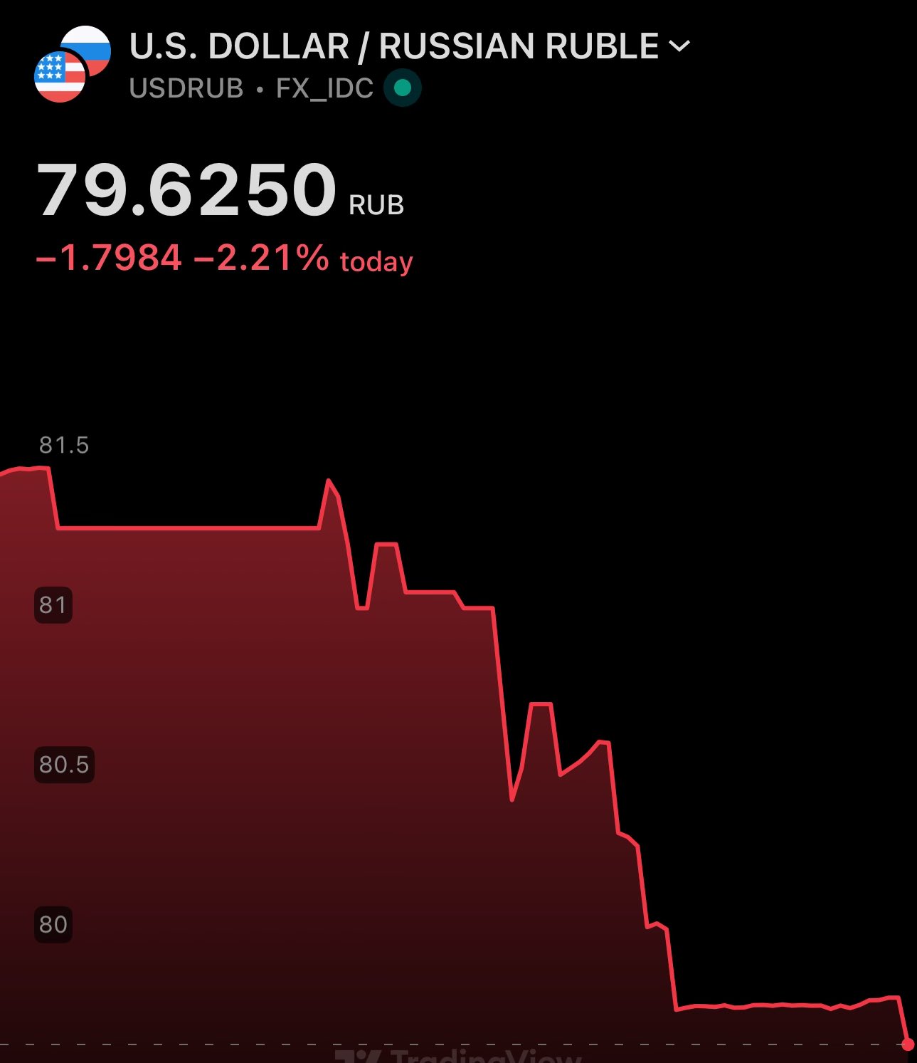🇺🇸🇷🇺 USD/RUB rate already fell to July 24th close, below 80