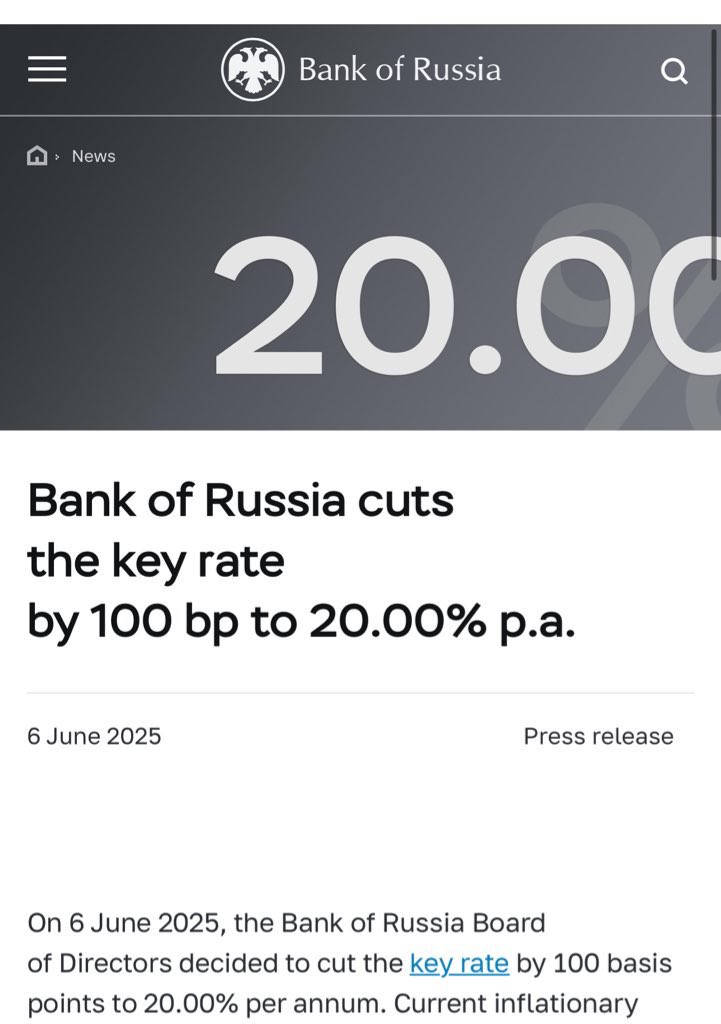 🇷🇺 and indeed Bank of Russia cuts interest rates down to 20%