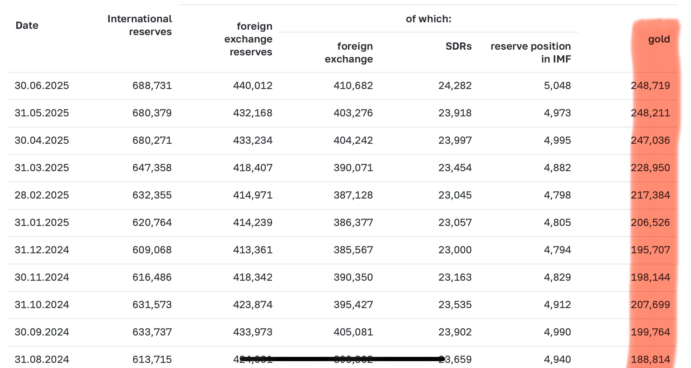a clarification: the table is CBR's gold holdings in USD - so the value goes up if price of gold goes up and gold stock remains at least unchanged