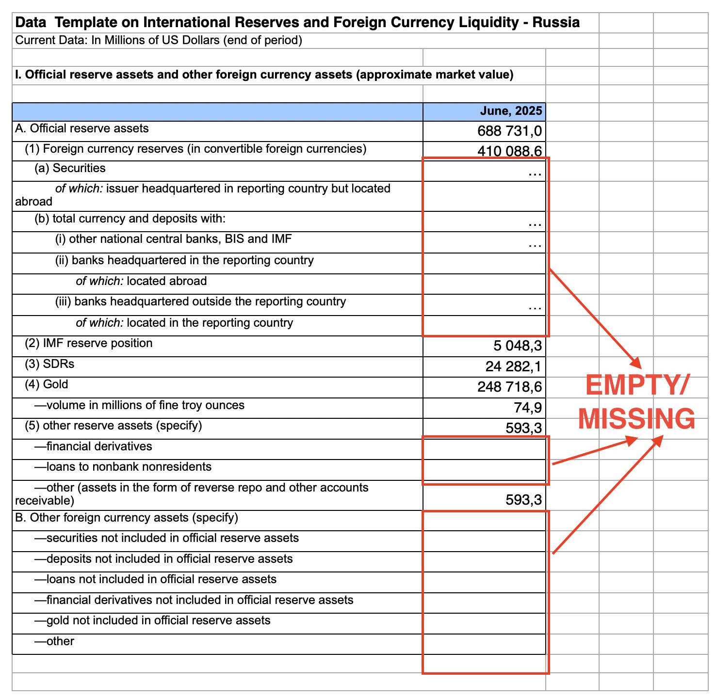 if you noticed - the IMF template reported by Russian Central Bank is missing entries