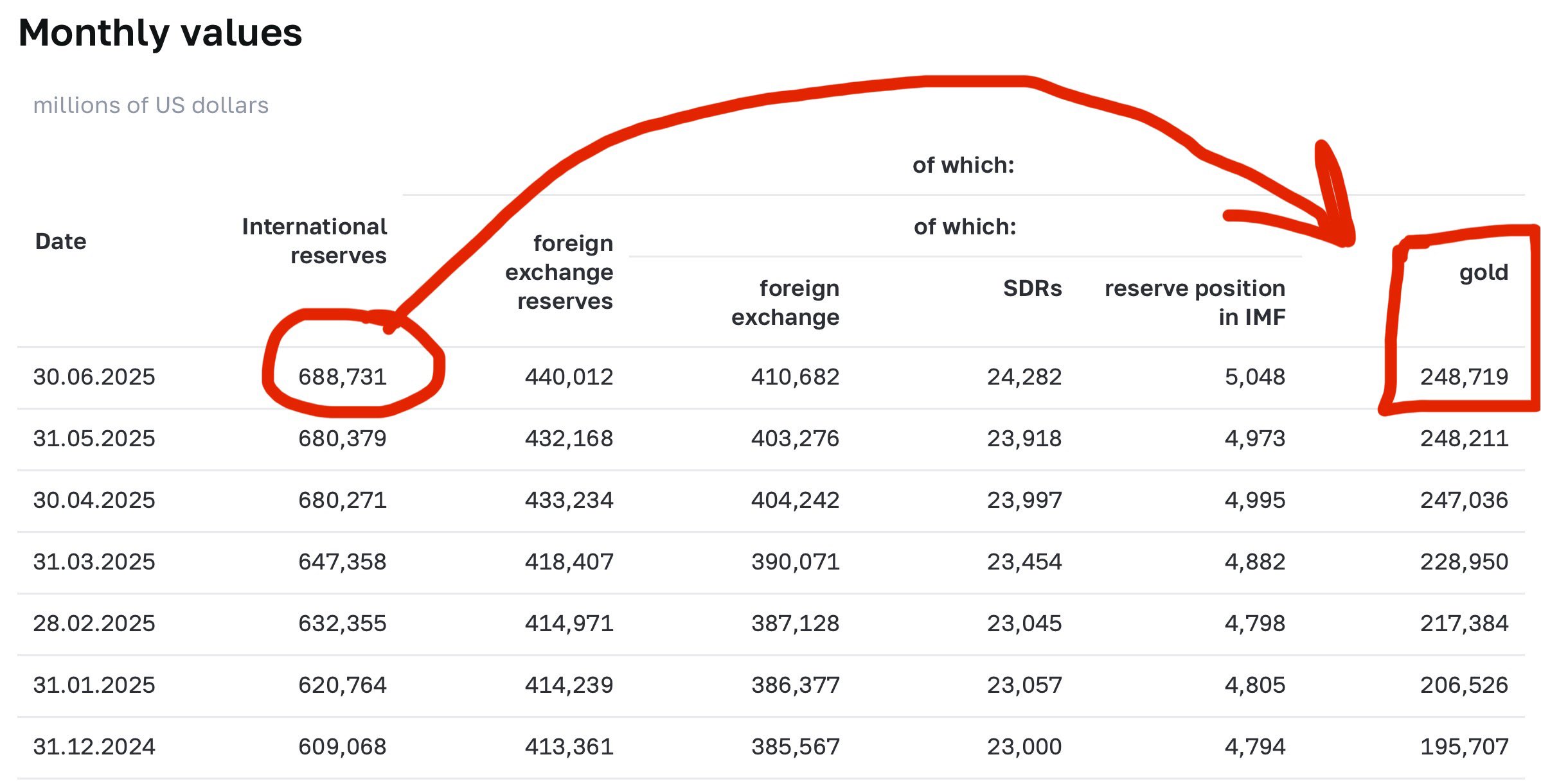 if you've read my previous posts you know that gold is ≈36% of Russia's international reserves
