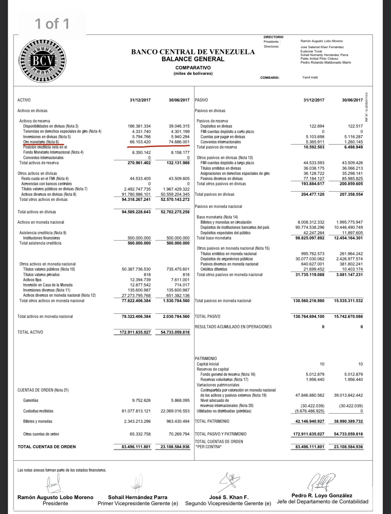 Venezuela's Central Bank Monetary Gold Holdings Constitute ≈20% of Their Balance Sheet