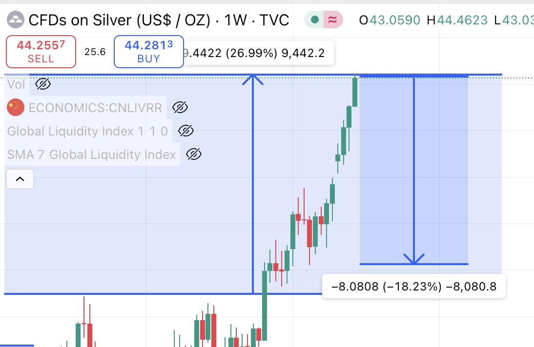 expect silver to correct down by ≈18%