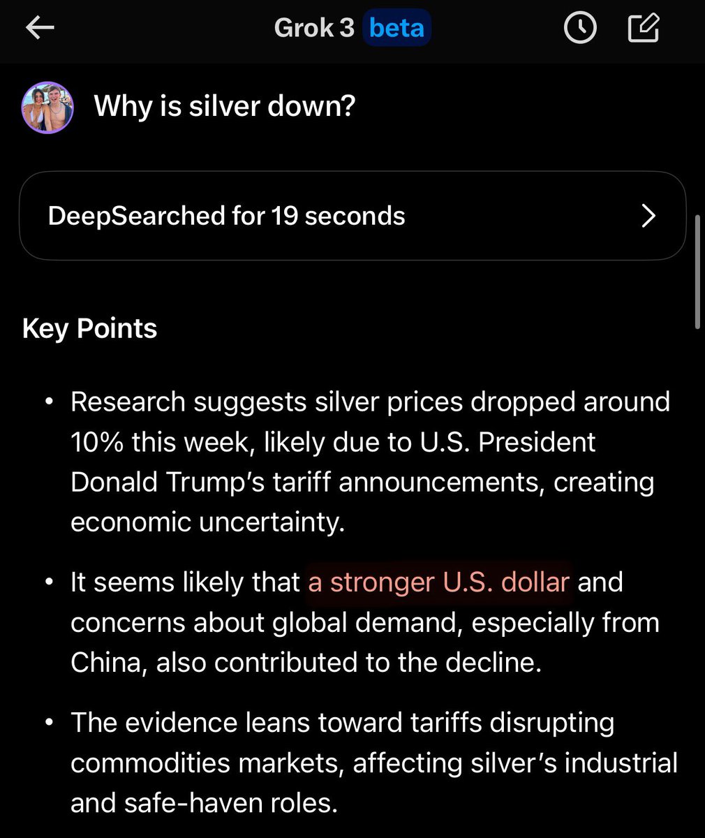 🤖 I asked Grok 3 why silver is down today