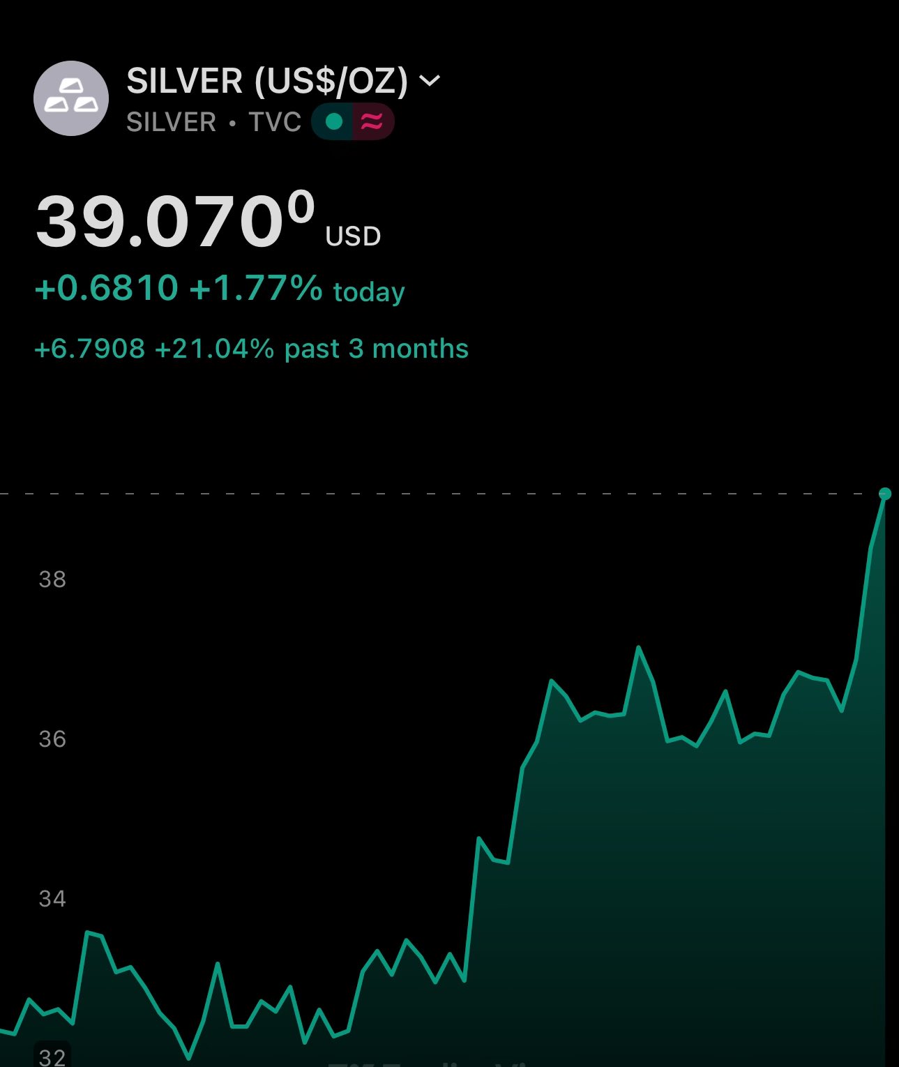 ≈$39.6 is a great area to long silver during the pullback