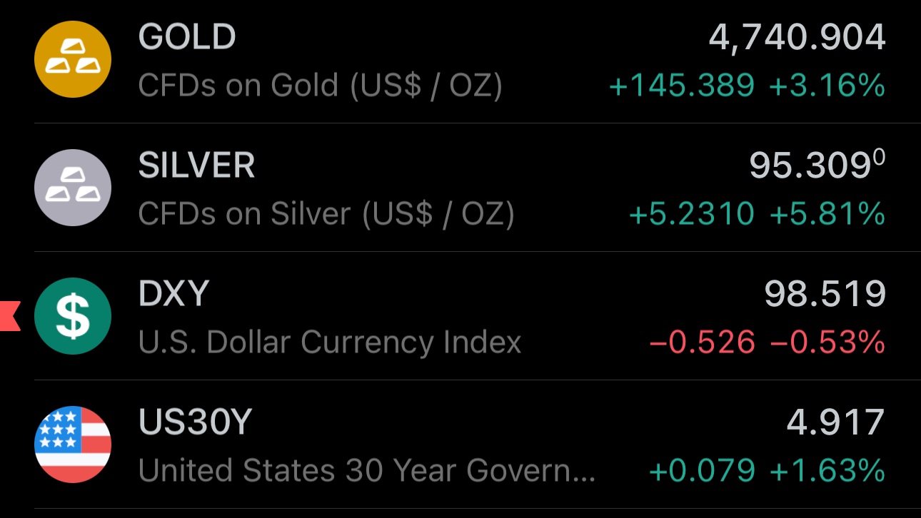 Ever since Trump took office, every $DXY weekly candle has been red