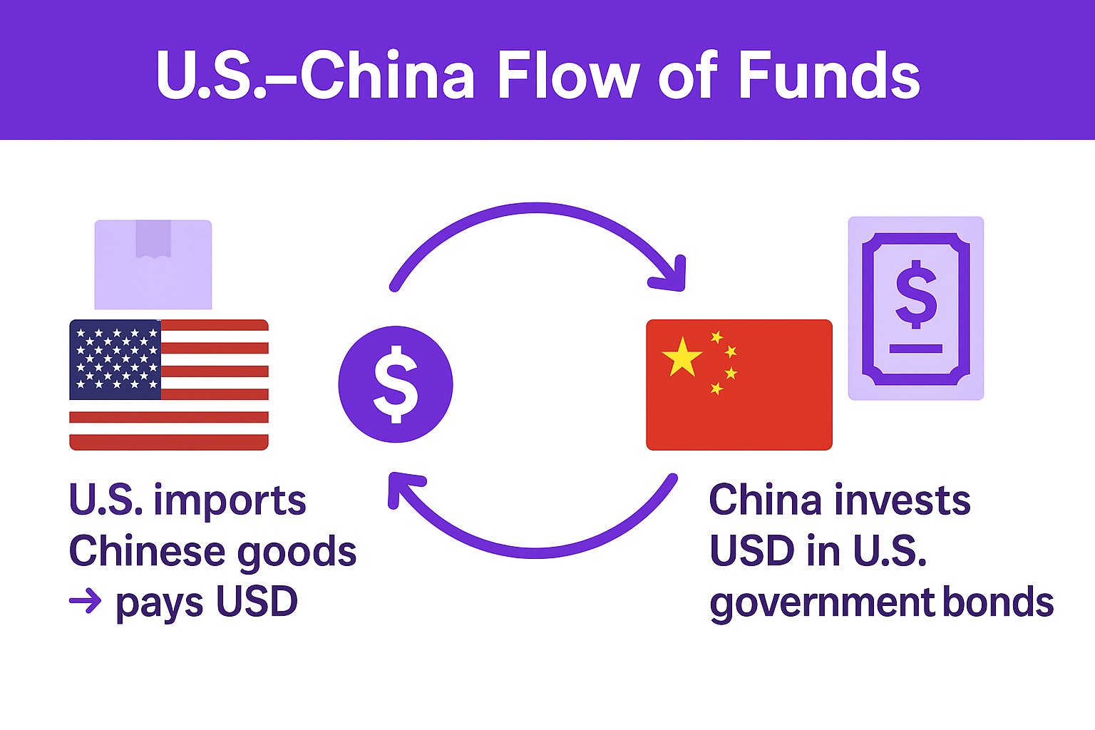 1️⃣US pays USD for Chinese goods