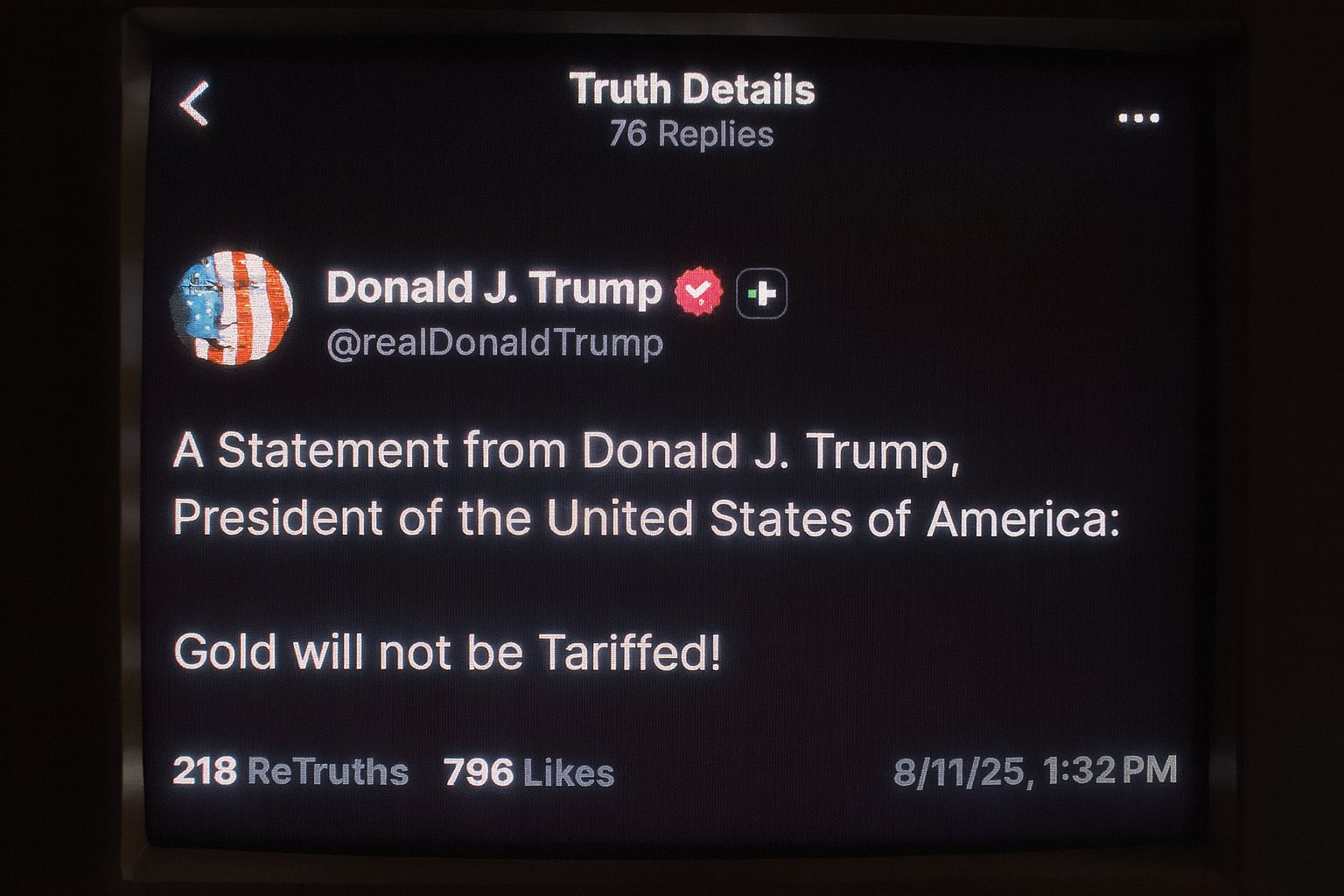 it's official: gold tariffs have been cancelled - just like I wrote last Friday 😄