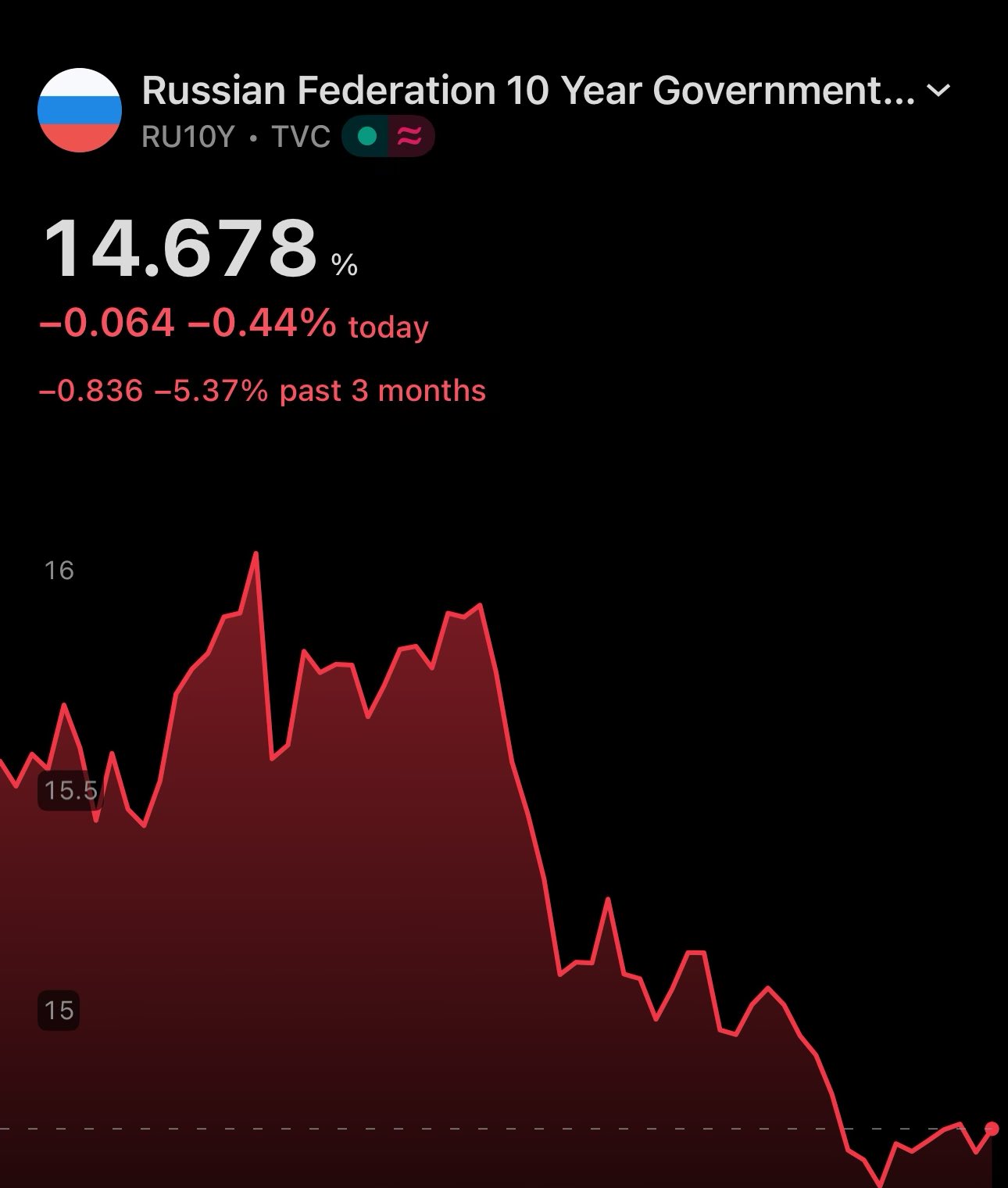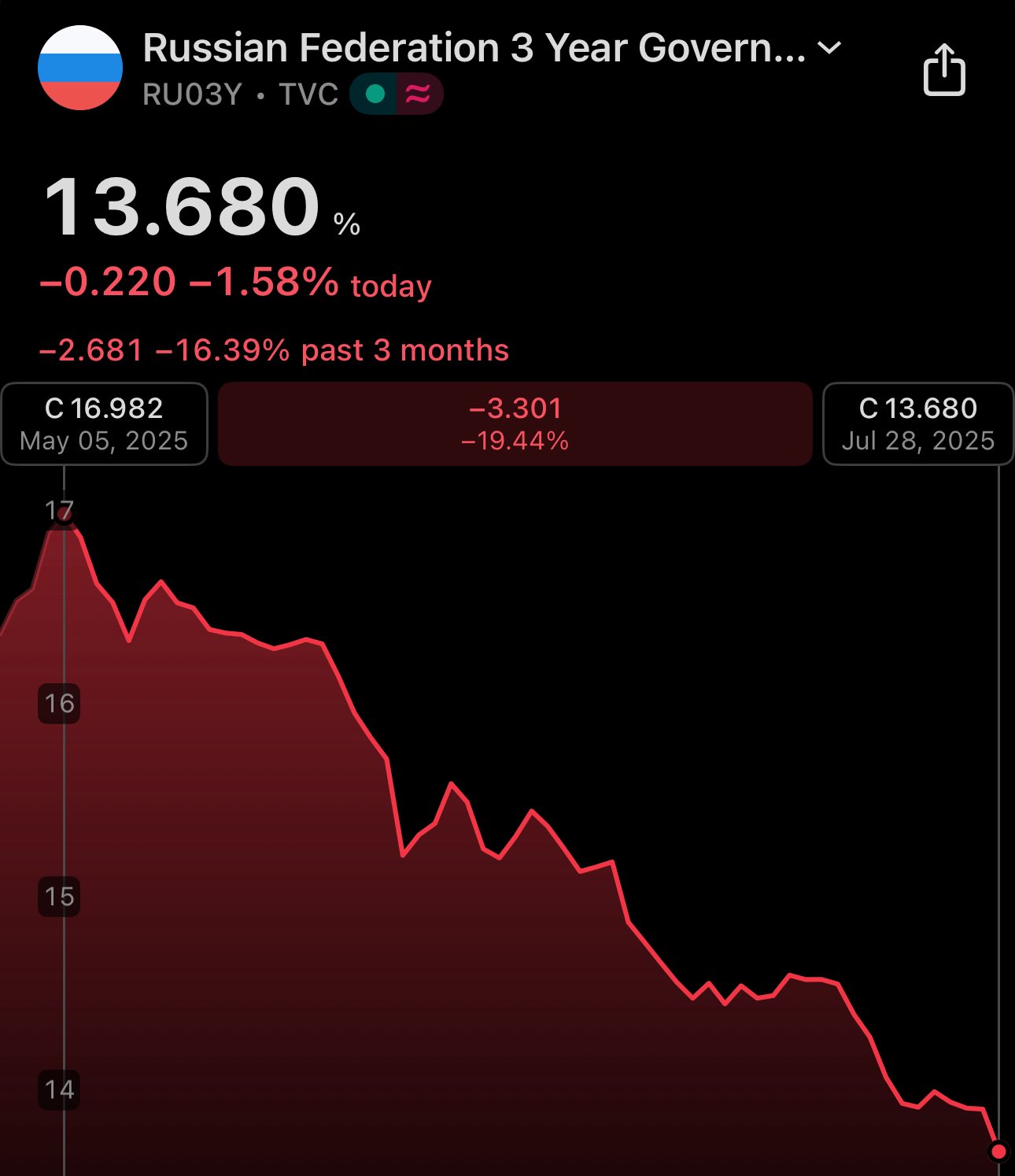 🇷🇺 Russian 3Y bond yield is down ≈20% over the last 3 months 😳