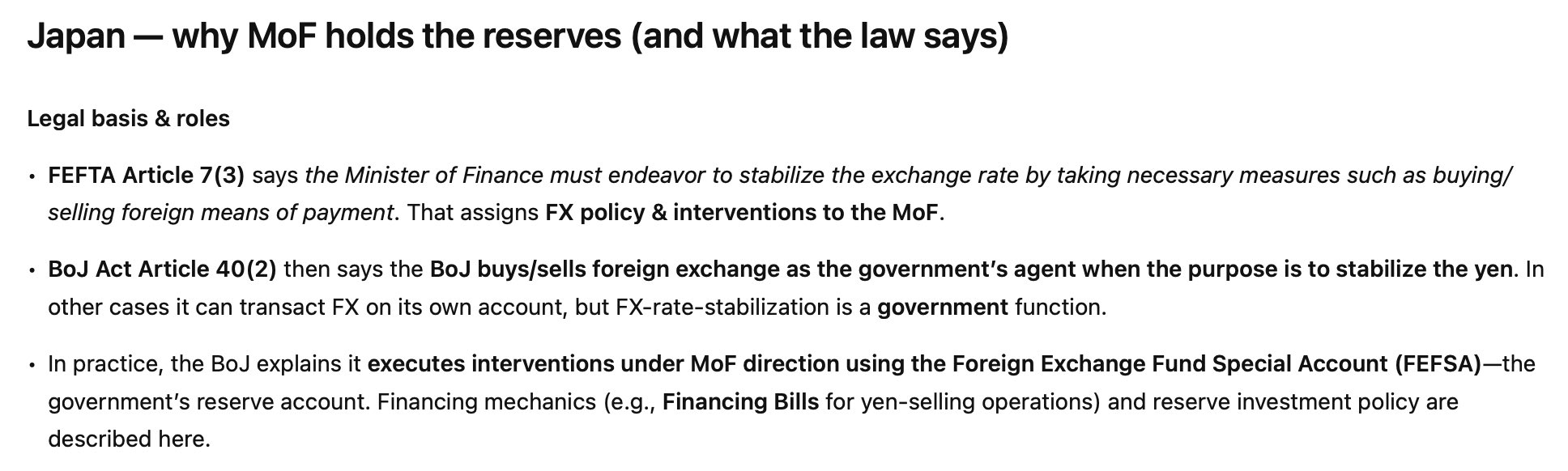 MoF is also the holder of Japan's international reserves - not the Bank of Japan