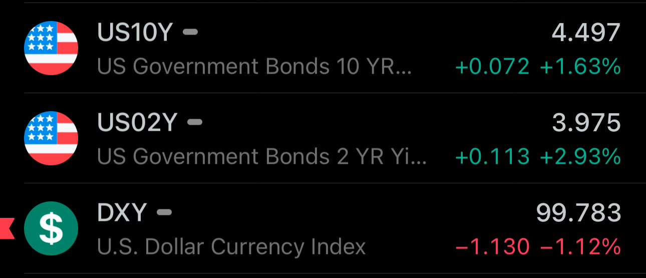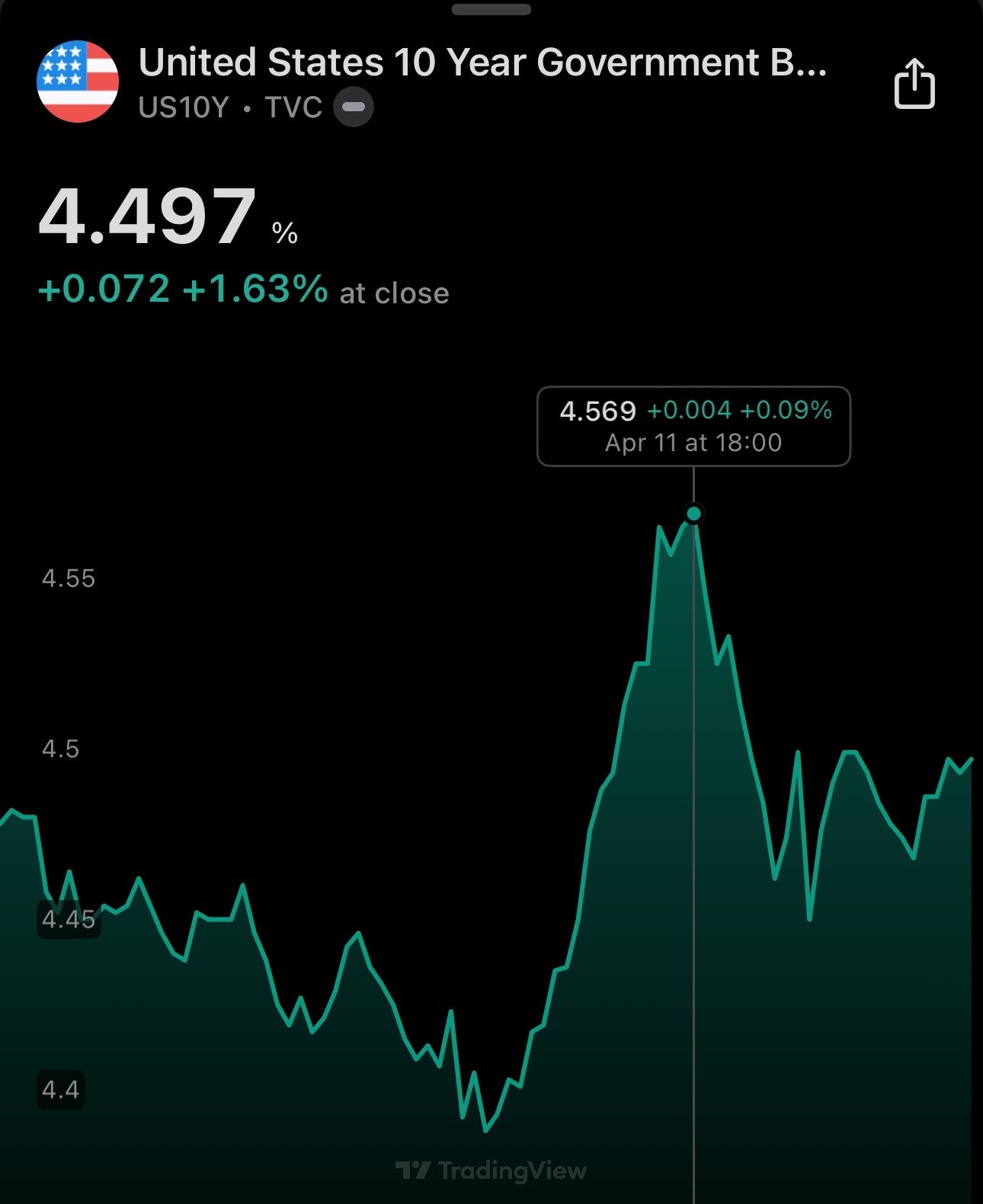 🚨US 10 Year Bond yield spikes above 4.5% at open