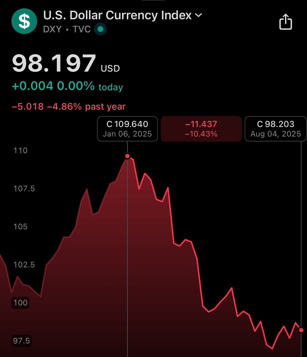 8 month later after my initial post USD index is down ≈8%