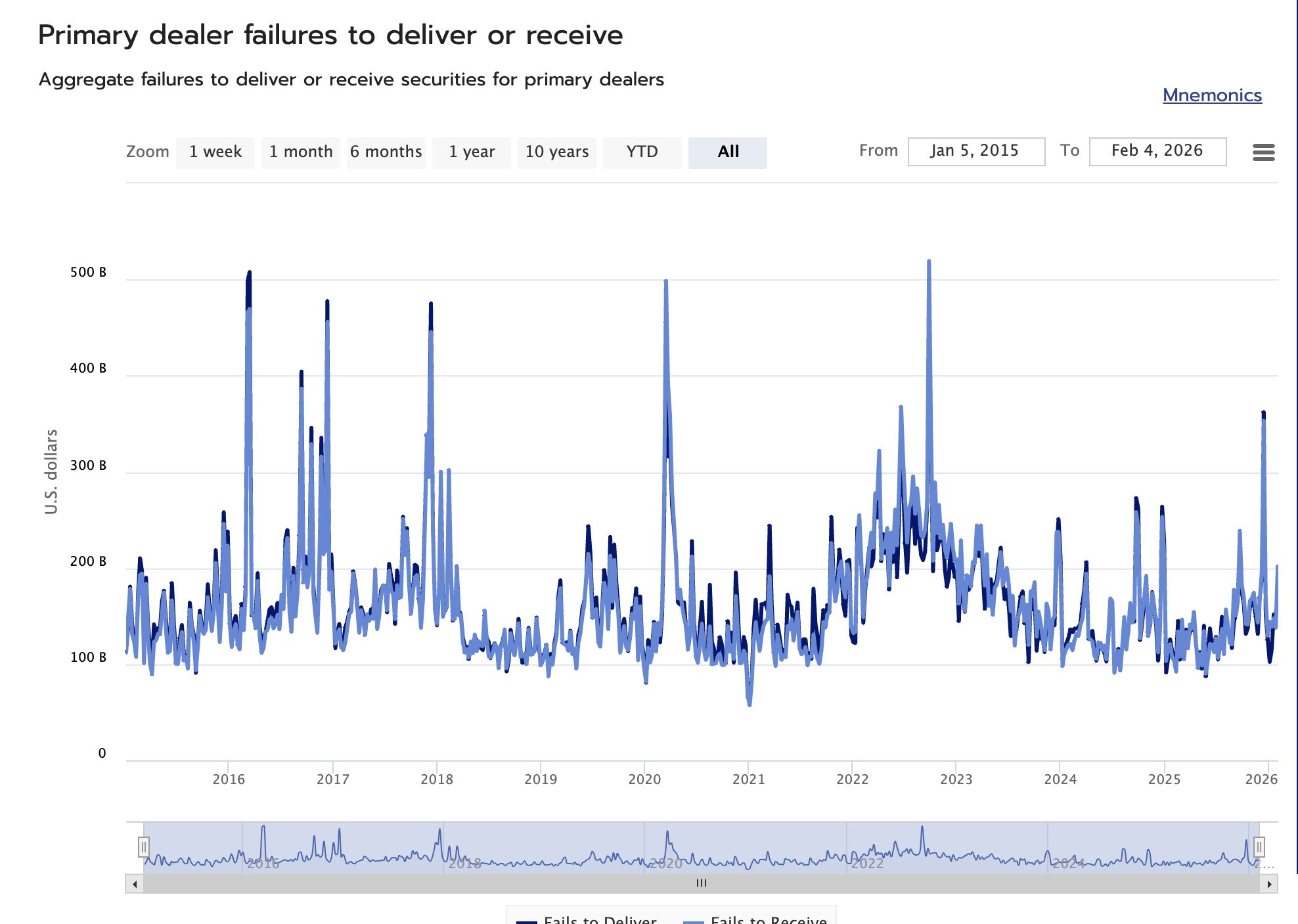 Security settlement failures on the dealer side are a signal of liquidity stress. In short, it signals that either collateral (securities) or USD liquidity are short. Generally, this is bearish for risk assets.
